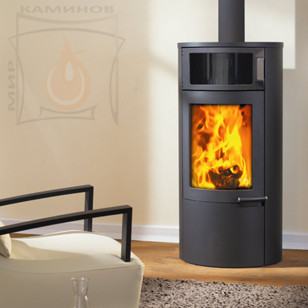 Топка с полукруглым стеклом Uno Back Austroflamm привлечет внимание своим внешним видом и функциональностью.