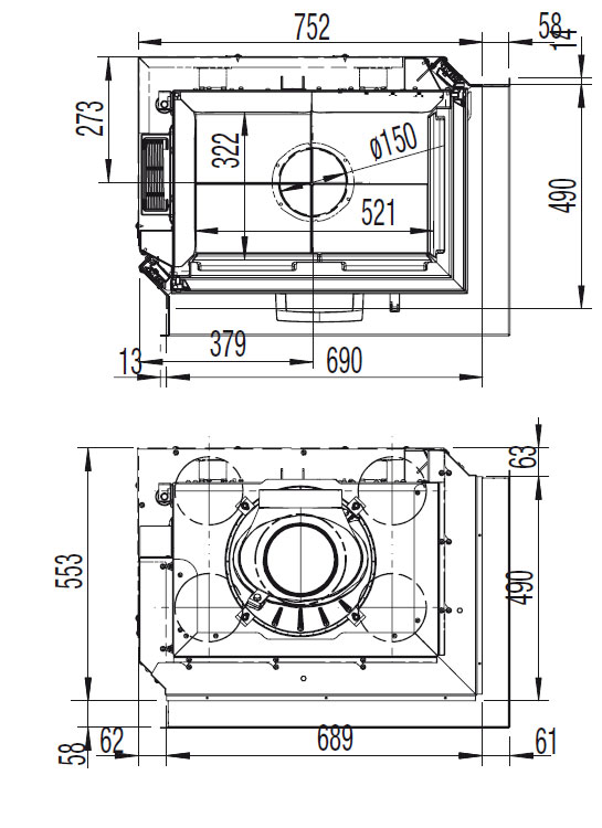 Каминная топка 69x49x57 S - Right подъёмный механизм, плоское стекло