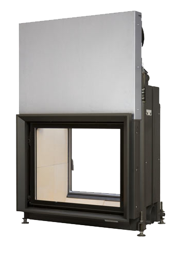 Предлагается каминная топка с двухсторонним стеклом с горизонтальным или вертикальным открытием дверец.