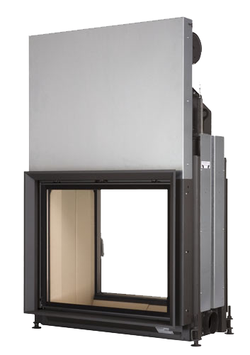 Предлагается каминная топка с двухсторонним стеклом с горизонтальным или вертикальным открытием дверец.
