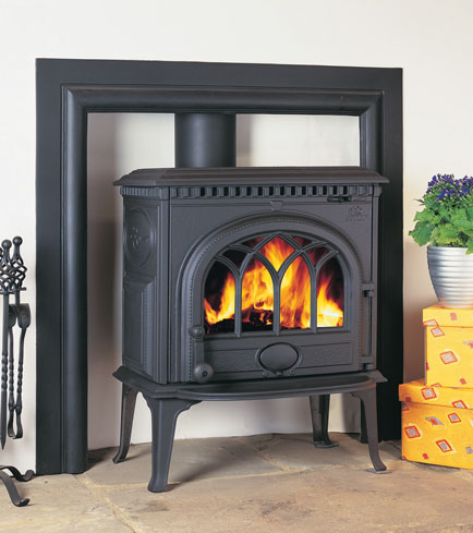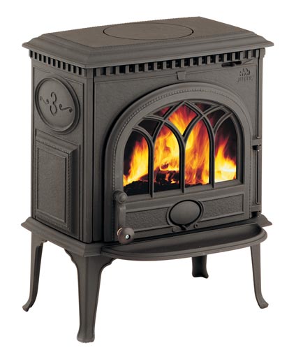 Это печь среднего размера в классическом стиле с большой стеклянной дверцей, которая позволяет наслаждаться фантастическим видом пламени.