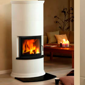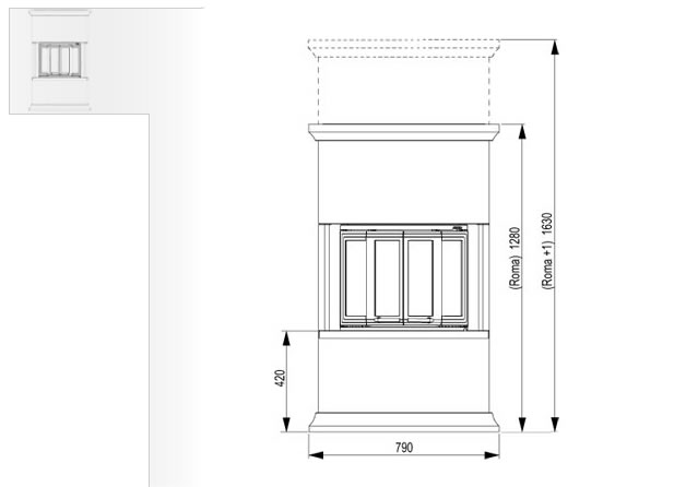 Каминная облицовка Roma с топкой Ni-22 в стандартном исполнении с карнизной плитой из натурального камня. Камин можно установить в любом положении.