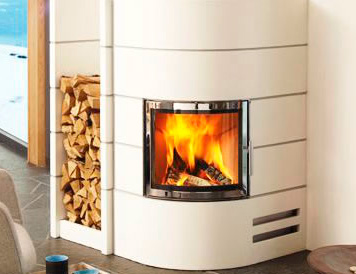 Угловой камин Amsterdam под каминные топки Nordpeis N-24 приспособлен как для правой так и для левой стены угла и может быть оборудован встроенным хранилищем для дров.