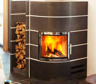 Угловой камин AMSTERDAM GEWACHSTER под каминные топки Nordpeis N-24 приспособлен как для правой так и для левой стены угла и может быть оборудован встроенным хранилищем для дров.