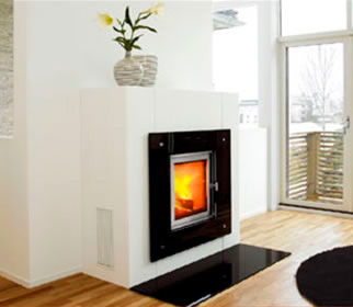 Каминные облицовки London под каминные топки Nordpeis N-21 со стеклянным фасадом.