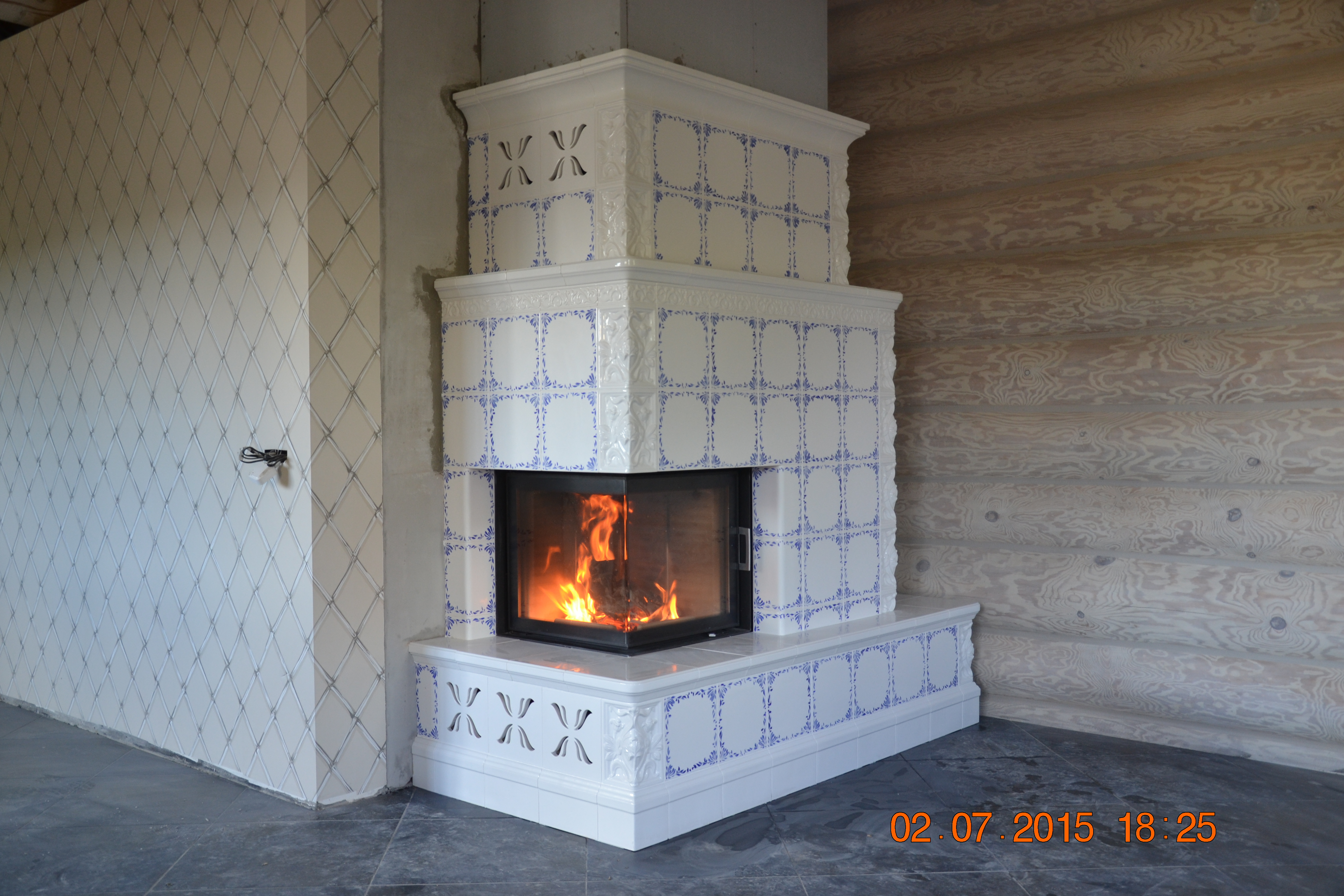 Для облицовки выбирался польский кафель Kafel-kar. Такой выбор был сделан не просто так - благодаря своим акумуляционным свойствам каминная облицовка отдает тепло в помещение даже когда камин уже не горит.