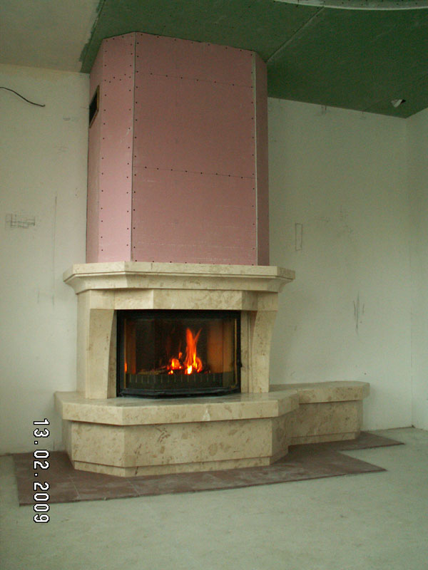 Облицовка: натуральный камень Crema Marfil с дополнительной правосторонней банкеткой